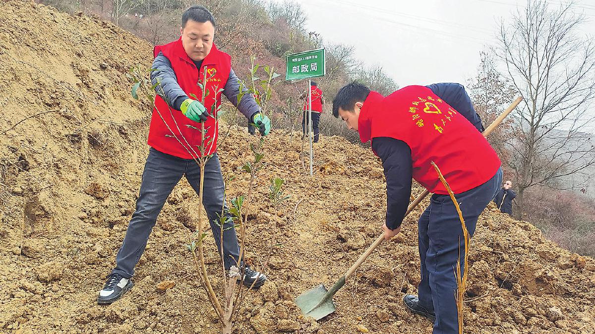 3月12日上午,陜西省略陽縣郵政分公司組織黨員、團員與青年志愿者開展植樹節(jié)志愿服務(wù)活動。