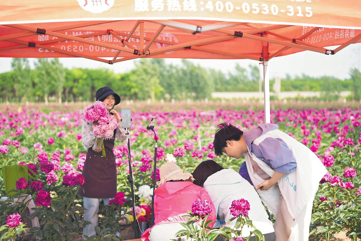 菏澤郵政直播團(tuán)隊(duì)走進(jìn)種植基地,開展芍藥鮮切花直播。 □趙現(xiàn)萌 攝