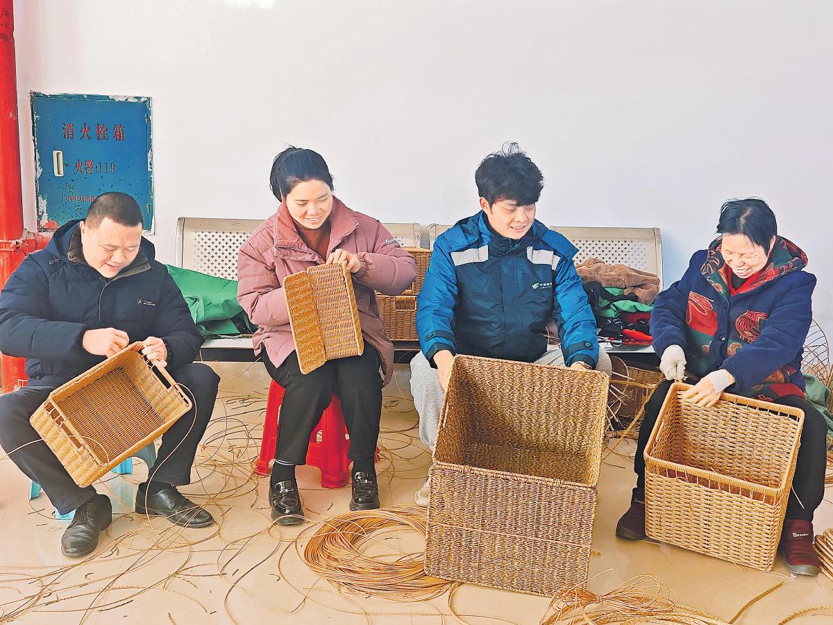 村民在浦北郵政鄉村振興示范基地內編織竹藝制品。 □吳永霞 攝