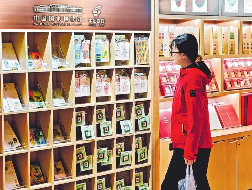 中國國家博物館主題郵局內(nèi)陳列著以國博館藏為靈感的豐富郵品,游客可以用不同文物主題的郵戳蓋章留念,感受集郵文化的獨(dú)特魅力。