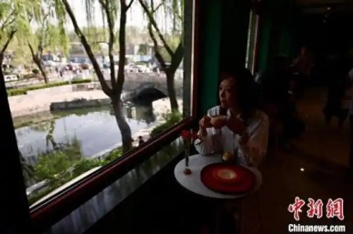 主題郵局推出特色咖啡及甜點,臨窗卡座受到游客歡迎。設計師巧妙運用“框景”手法,寬闊的玻璃窗仿佛取景器,讓游客通過新視角觀賞萬寧橋的碧波垂柳、火德真君廟的飛閣重檐。