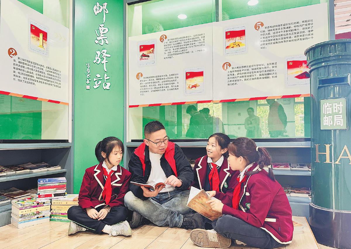 4月22日,江蘇省海安市郵政分公司走進(jìn)城南實(shí)驗(yàn)小學(xué)“郵票驛站”,開展全民閱讀圖書校園巡展活動(dòng)。活動(dòng)現(xiàn)場(chǎng),同學(xué)們與郵政志愿者共讀集郵圖書,學(xué)習(xí)郵票知識(shí)。 □韋雅琴 攝影報(bào)道