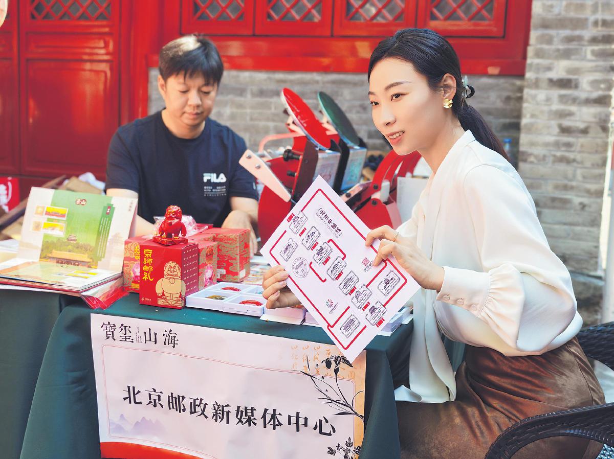 5月14日至25日,位于北京故宮—景山文化中軸線核心區的北京金石博物館推出“寶璽山海”主題文創市集,北京市郵政分公司攜主題文創、明信片凸版印刷設備及郵政特色章戳亮相。