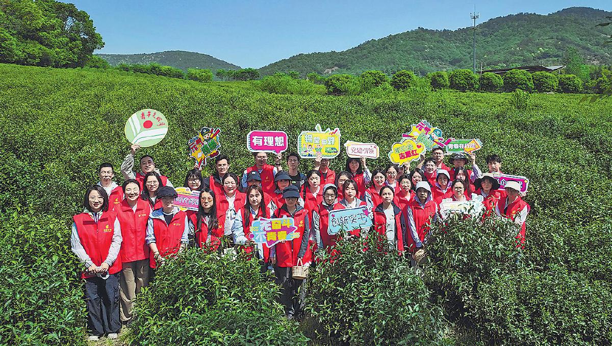 春茶貴如金。丁蜀鎮(zhèn)上壩村老上壩生態(tài)農(nóng)業(yè)發(fā)展專業(yè)合作社迎來了一年中最忙碌的采茶季。宜興市郵政分公司作為該合作社的黨建聯(lián)盟單位,在了解到合作社面臨采茶用工短缺的難題后,向全體團(tuán)員發(fā)出助農(nóng)號召,成立“助農(nóng)采茶”志愿服務(wù)隊,以“采茶+直播”形式助力茶農(nóng)增產(chǎn)增收。“五四”青年節(jié)前夕,無錫市郵政分公司及所轄江陰、宜興市分公司團(tuán)委聯(lián)合開展“點燃青春引擎 賦能‘錫’望田野再出發(fā)”“五四”青年節(jié)主題團(tuán)日活動,組織40余名團(tuán)員青年走進(jìn)上壩村,開啟一場青年與鄉(xiāng)村振興雙向奔赴的“心靈之約”。