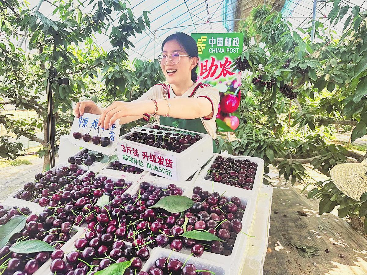 洛陽郵政直播團隊助銷新鮮櫻桃。
