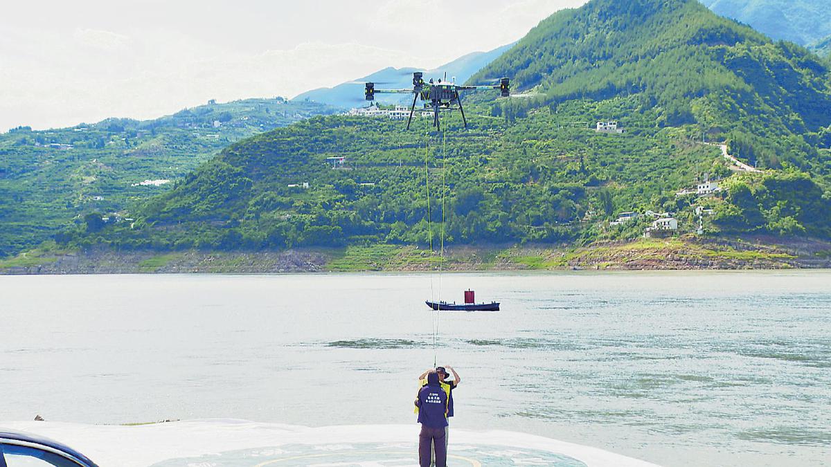 無人機跨江轉運,讓巫山脆李快速下山進城。 □王光平 攝