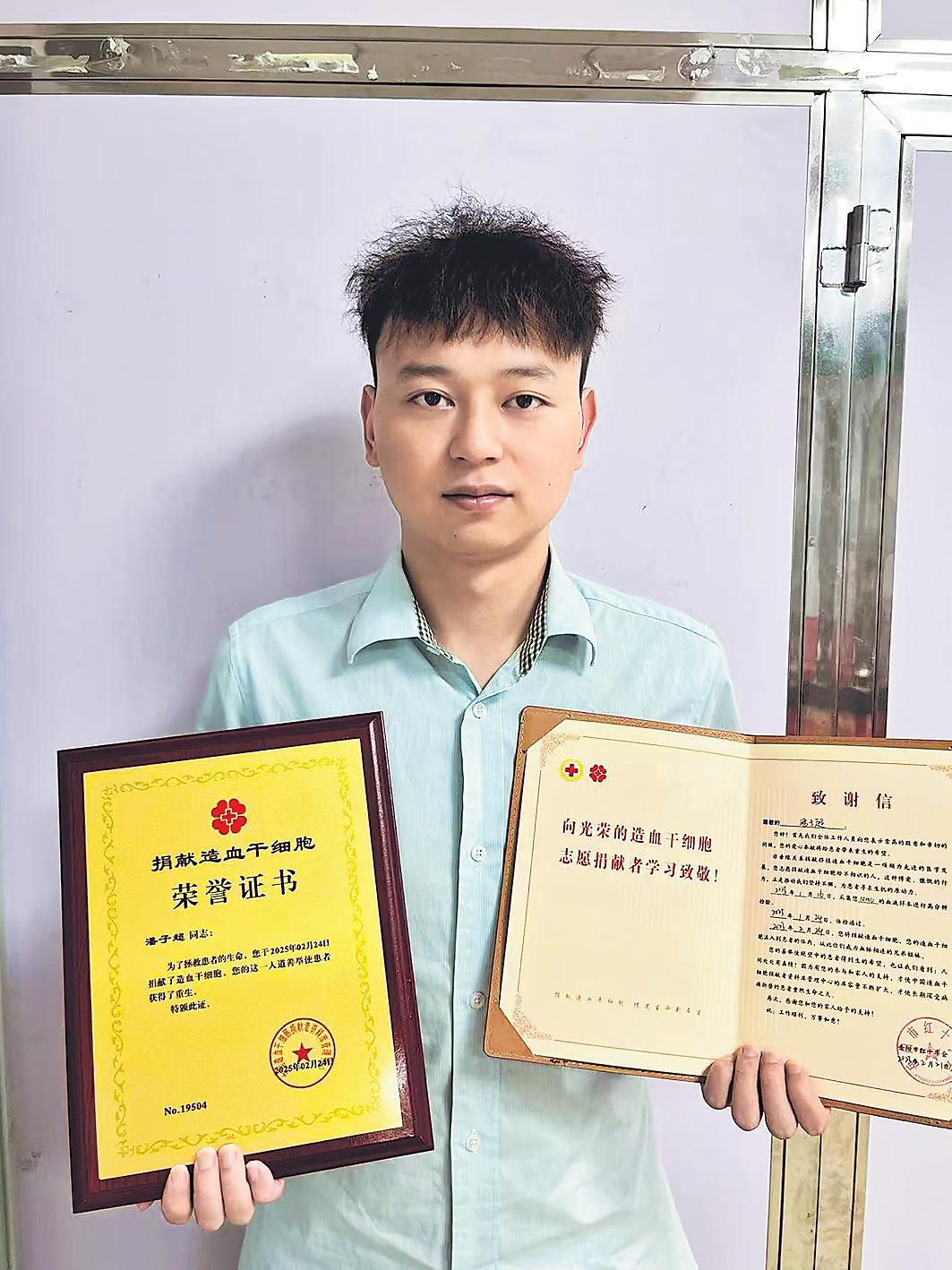 今年初,接到配型成功的電話后,想著能挽救一條生命,他內(nèi)心激動不已,毫不猶豫地決定捐獻。潘子超說:“能成為別人絕境中的萬分之一匹配者,非常幸運。”
