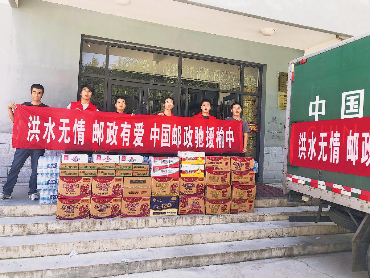 房屋被沖毀、道路被沖斷,但寄遞服務不中斷、金融服務不中斷、為人民服務的情懷不中斷。8月10日,榆中縣分公司第一時間在高崖鎮榆中三中安置點設置臨時郵局,提供快遞收發、公益食品發放、書報刊贈閱等服務。