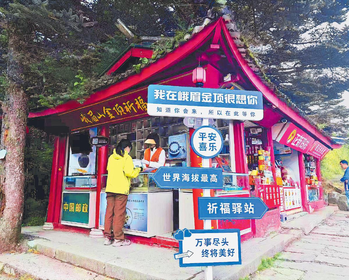 “我們不僅是一座郵局,更是祈福的驛站。”樂山市郵政分公司郵政業(yè)務(wù)部負(fù)責(zé)人徐錦介紹道。金頂祈福郵局深度挖掘峨眉山濃厚的佛教文化與壯麗的自然景觀,精心設(shè)計(jì)了一系列祈福主題產(chǎn)品,如禪語和佛具等佛教元素紀(jì)念章、峨眉四季風(fēng)光明信片……方寸之間,意境悠遠(yuǎn),游客在寄送祝福的同時(shí),更能感受峨眉山獨(dú)特的文化底蘊(yùn)和自然之美。