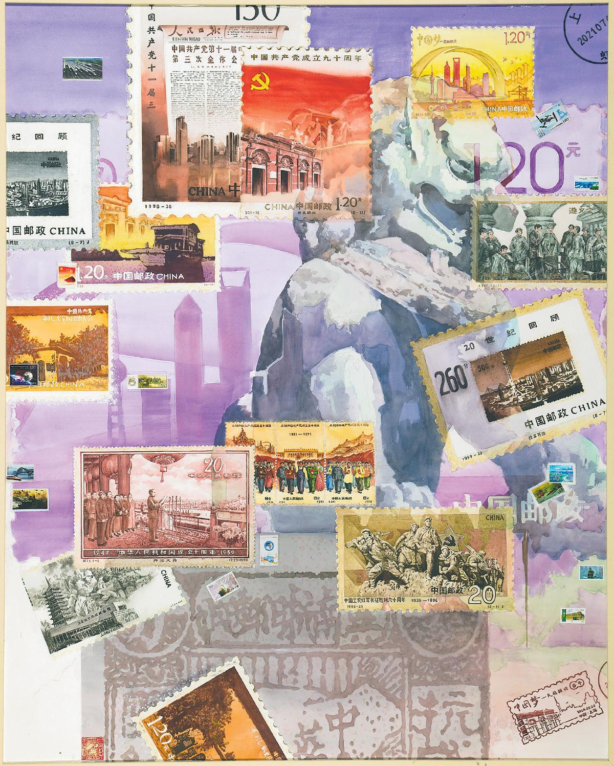 為了更好地完成畫作,田燕萍還請教了她的繪畫老師——浙江省美術家協會會員、水彩畫界策展人馬百齊。“方寸對畫卷,頗有歷史和藝術的價值。”馬百齊肯定了田燕萍的創作思路,并在郵票選取、表現手法、繪畫技巧上對其進行了專業的指導。