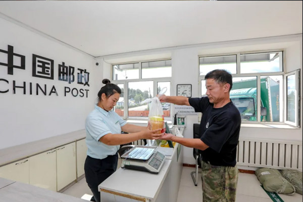 采訪組正好碰到了五林洞鎮蜂農王永進來寄蜂蜜。他說,村里的蜂蜜、木耳、各種山野菜等,很受大家歡迎。郵政不僅幫助解決創業資金問題,還通過站點把他們的產品銷售到全國各地,帶大家走上了致富之路。