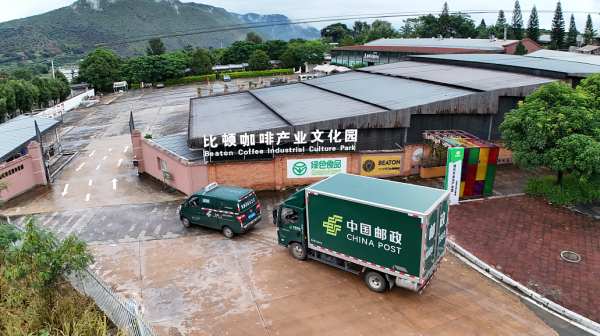 在比頓咖啡莊園包裝車間,一袋袋精品咖啡正被打包整齊,貼上郵政快遞單,即將發(fā)往全國各地。莊園經(jīng)理張發(fā)旭用“認真、負責(zé)、熱情”六個字概括郵政服務(wù),“寄遞天天上門收件,郵儲銀行提供信貸支持,這兩者就像鳥的翅膀,缺一不可。”他這樣形容郵政寄遞和金融業(yè)務(wù)的密切配合。