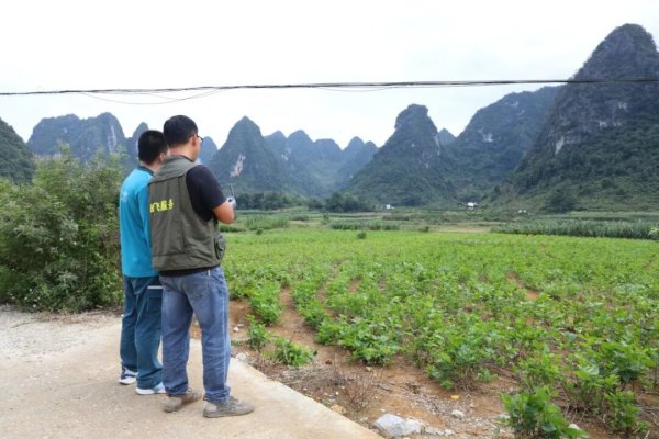 在靖西市岳圩鎮桑葉種植基地,28歲的投遞員黃忠財正協助工作人員操作無人機升空。無人機載重30公斤,代替70歲老人扛起沉重的農藥、化肥。“老人自己噴藥,一天噴不完;我們幫助他們,用無人機一個多小時就能完成。”黃忠財說,線路沒變,山還是那座山,但工具變了,初心未改。