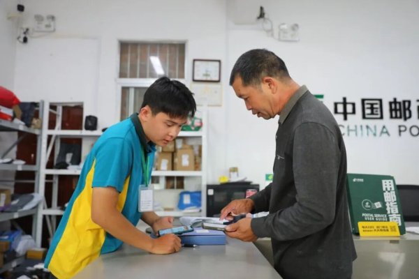 在平孟郵政所內,黃河振耐心協助村民查看取件信息