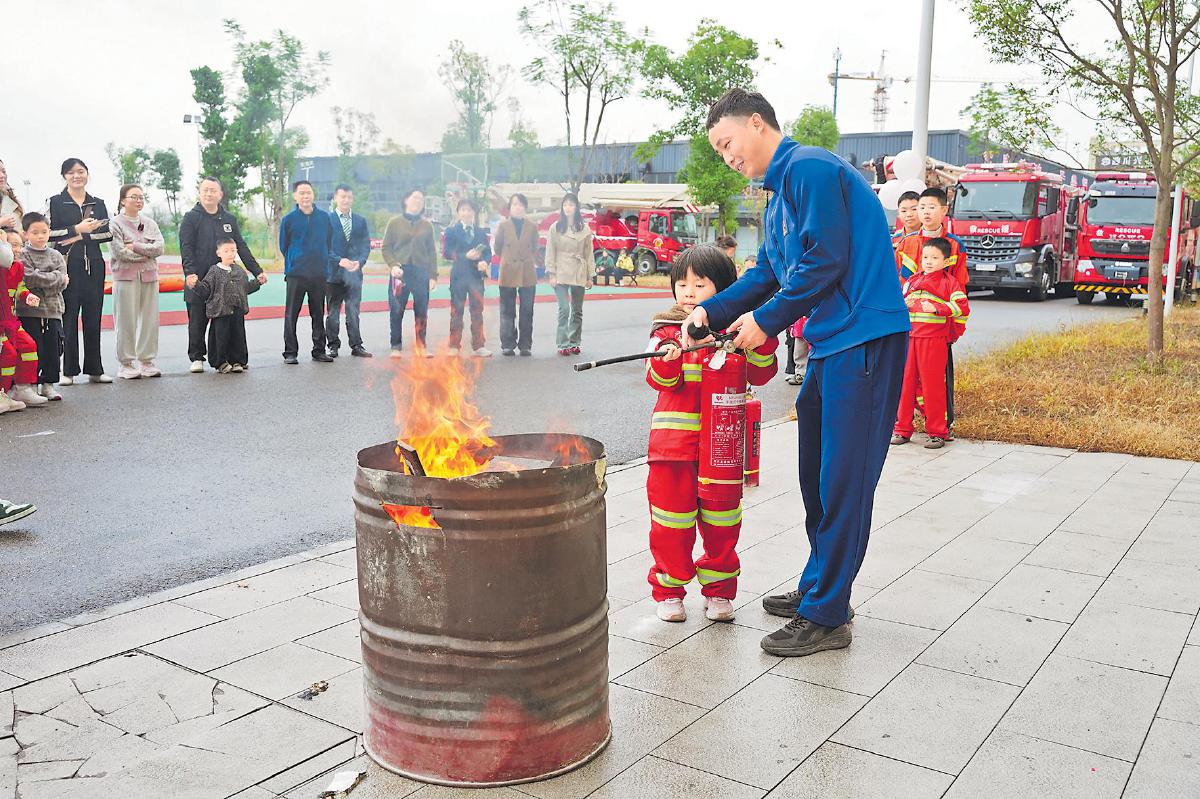 活動現(xiàn)場,孩子們在消防員的悉心指導(dǎo)與保護(hù)下,穿起消防服、戴上頭盔,變身神氣十足的“小小消防員”。著裝完畢,孩子們在消防員和郵政員工的帶領(lǐng)下有序參觀了消防基地。他們仔細(xì)觀察每一件消防設(shè)備,認(rèn)真聆聽消防員的詳細(xì)講解,眼里閃爍著求知的光芒。在消防技能實(shí)操環(huán)節(jié),孩子們手持滅火器,全神貫注地學(xué)習(xí)提、拔、握、壓的操作要領(lǐng),并在消防員的指導(dǎo)下,勇敢地對準(zhǔn)模擬火源進(jìn)行噴射,親身體驗(yàn)滅火過程。