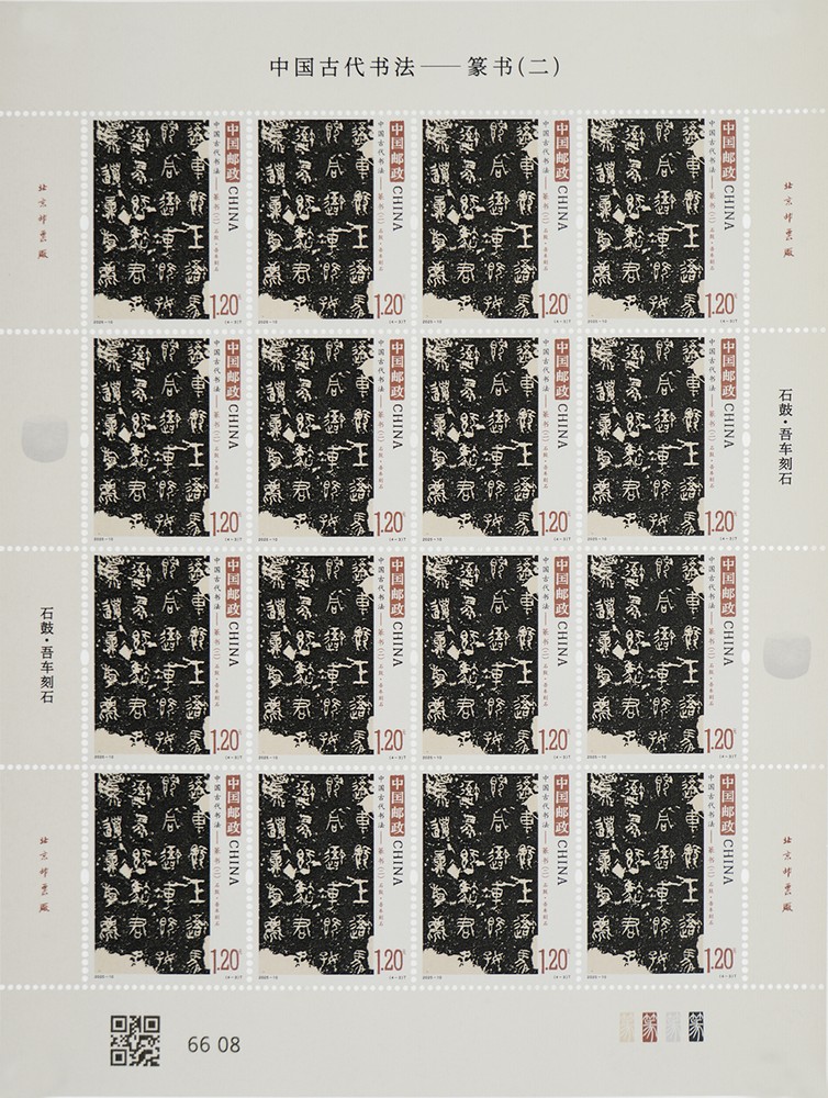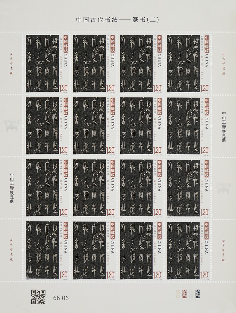 中國郵政定于2025年6月21日發(fā)行《中國古代書法——篆書(二)》特種郵票1套4枚,小型張1枚。詳情如下: