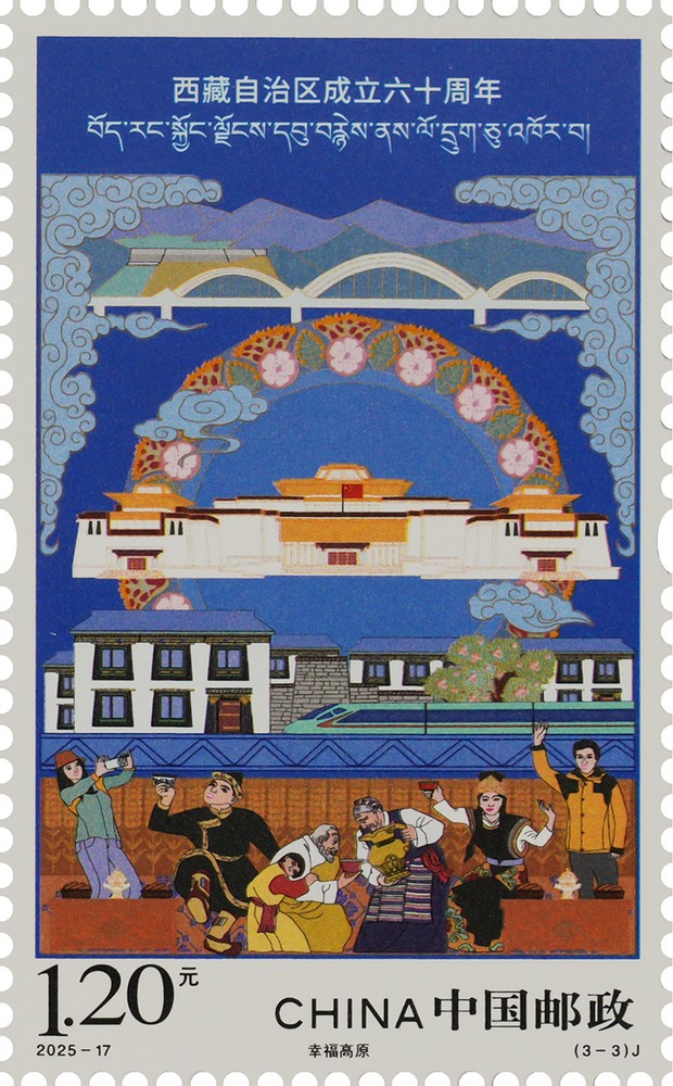 中國郵政定于2025年8月15日發行《西藏自治區成立六十周年》紀念郵票1套3枚。詳情如下: